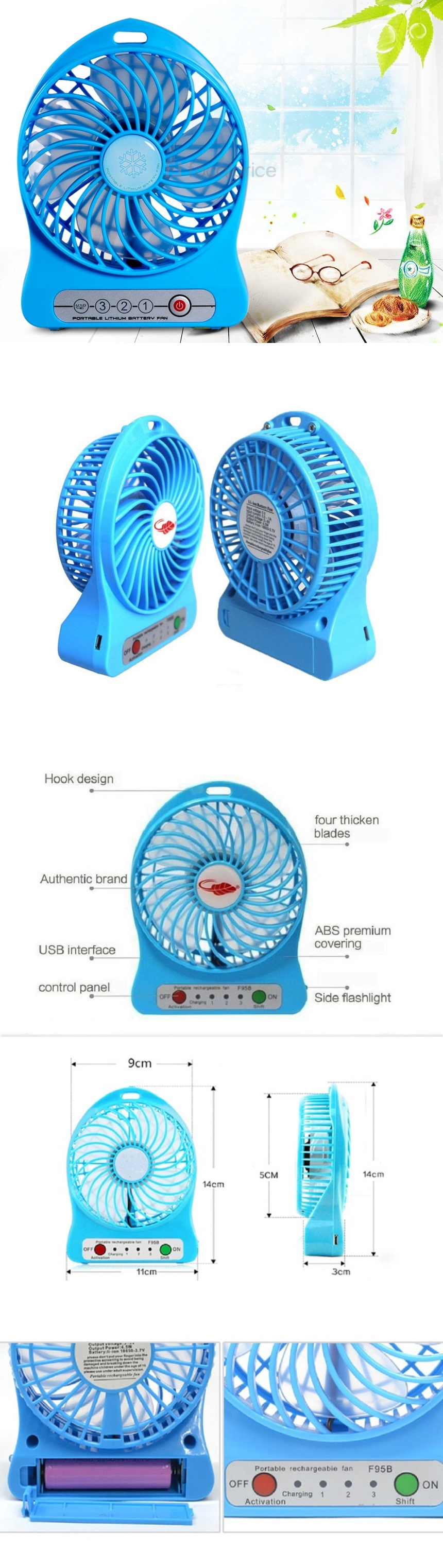 - A professional portable fan with integration of design, simple appearance and solid structure.